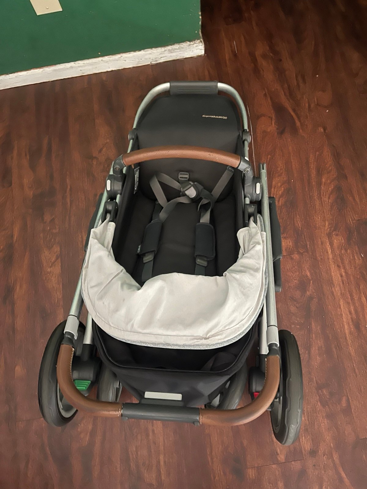 Uppababy Cruz V2 stroller. In good used condition. Washed and ready to be used. Some signs of wear such as scuffs and some wear on the canopy inner lining, please take a good look at the pictures provided. Everything works good on the stroller. Due to size I can only ship within the continental United States.